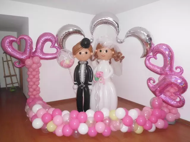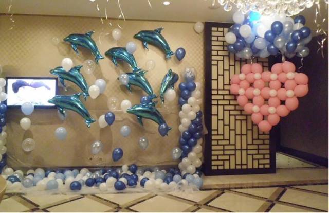 舞台是婚宴现场最吸引人们目光的地方,所以说新人一定要重点布置舞台。舞台背景可以用气球背景布置,然后再挂上新人的婚纱照或者是精心设计的LOGO,使用适量的气球造型进行点缀能更好的活跃现场的气氛。